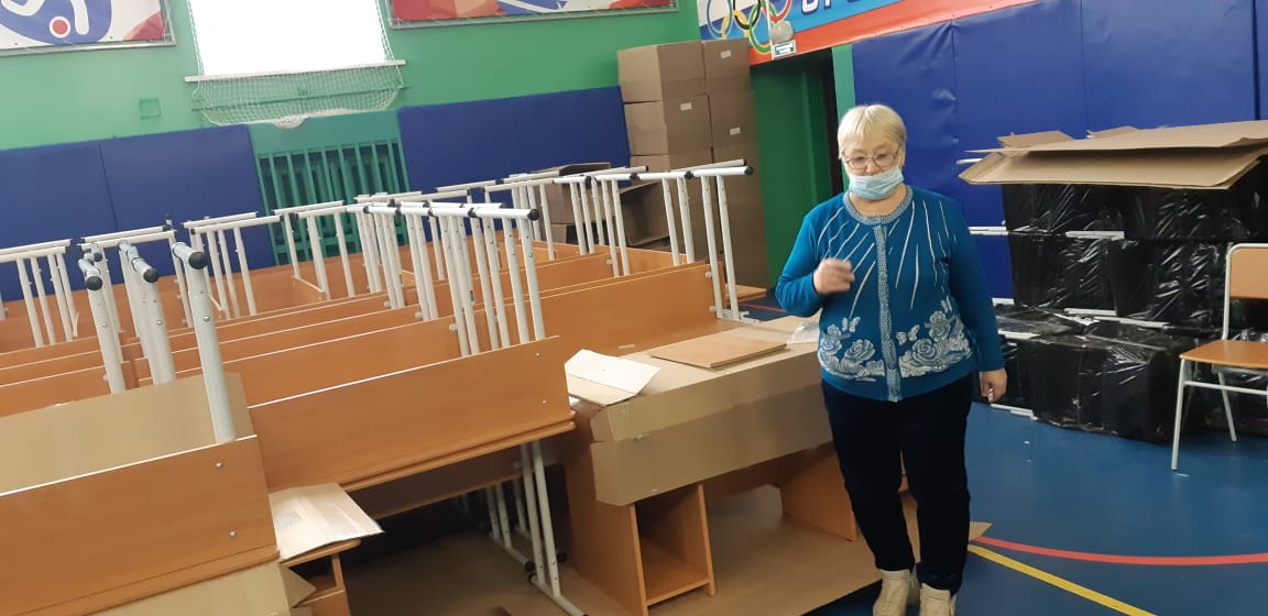 Объёмная поставка школьной мебели произведена в центр образования имени В. И. Пеллера: 104 стола для учащихся, 208 стульев, 8 столов для учителя.