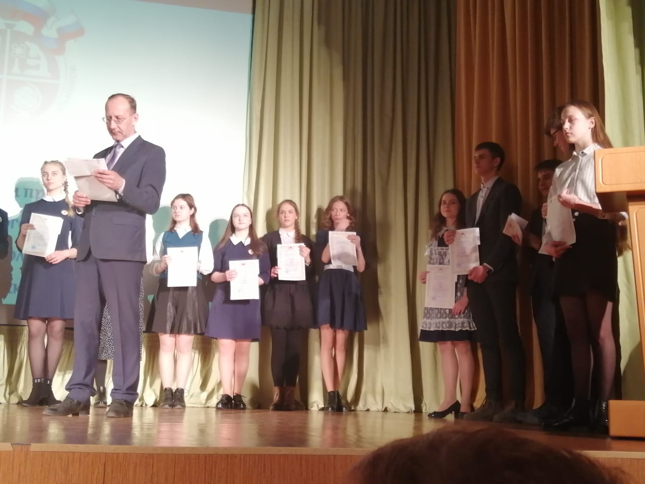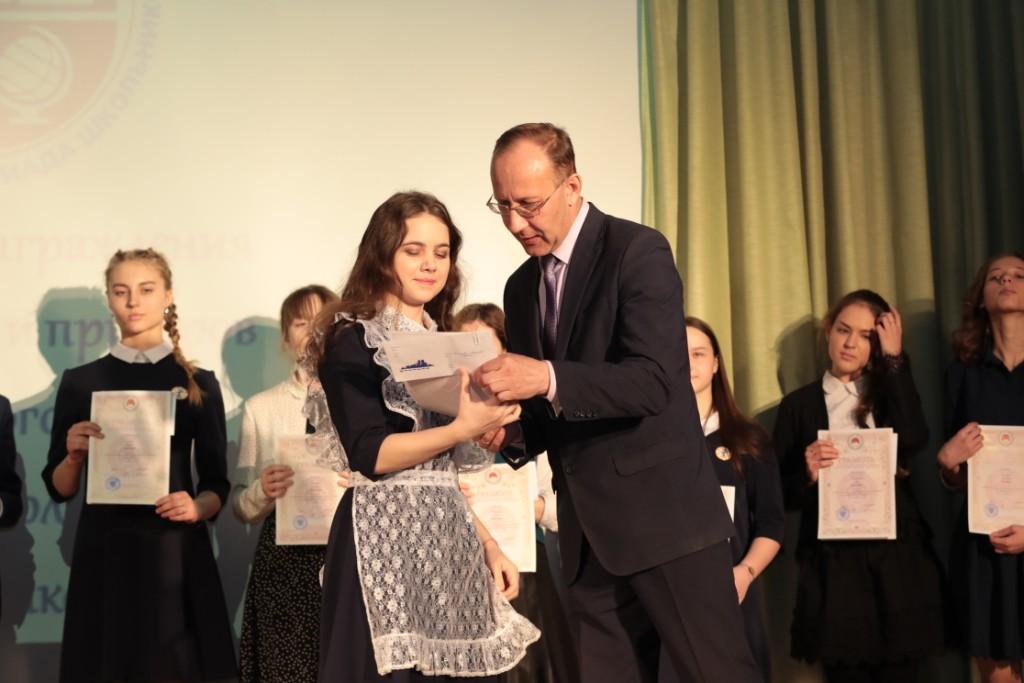 11 марта в МБОУ "Гимназия 1" г. Биробиджана состоялась торжественная церемония награждения победителей и призеров регионального этапа Всероссийской олимпиады школьников. Заслуженные награды были вручены учащимся образовательных учреждений области и педагогам - наставникам. Заслуженные награды были вручены учащимся образовательных учреждений области и педагогам - наставникам. учащуюся 11 класса Захарову Марину и педагога-наставника Наконечную Марину Хазбиевну; учащуюся 11 класса Вегелите Габию - призера олимпиады по литературе и учителя Акимову Елену Александровну.