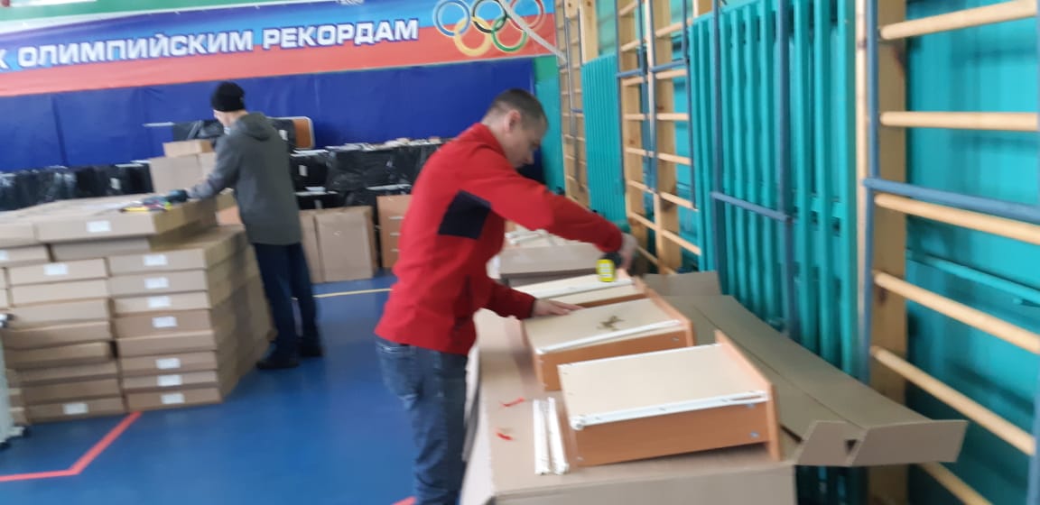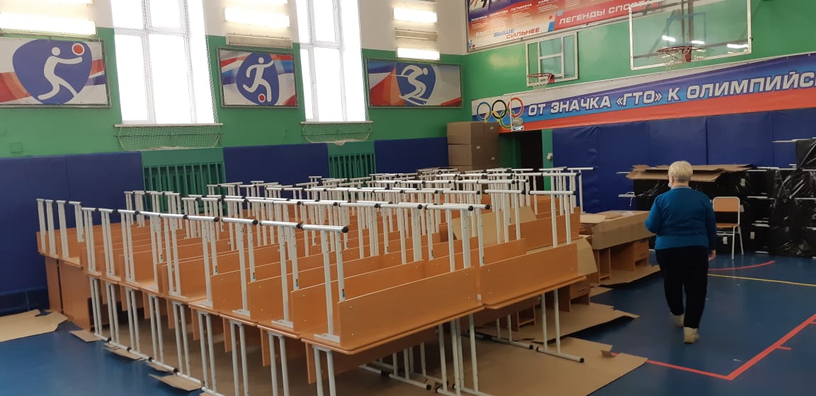 Объёмная поставка школьной мебели произведена в центр образования имени В. И. Пеллера: 104 стола для учащихся, 208 стульев, 8 столов для учителя.