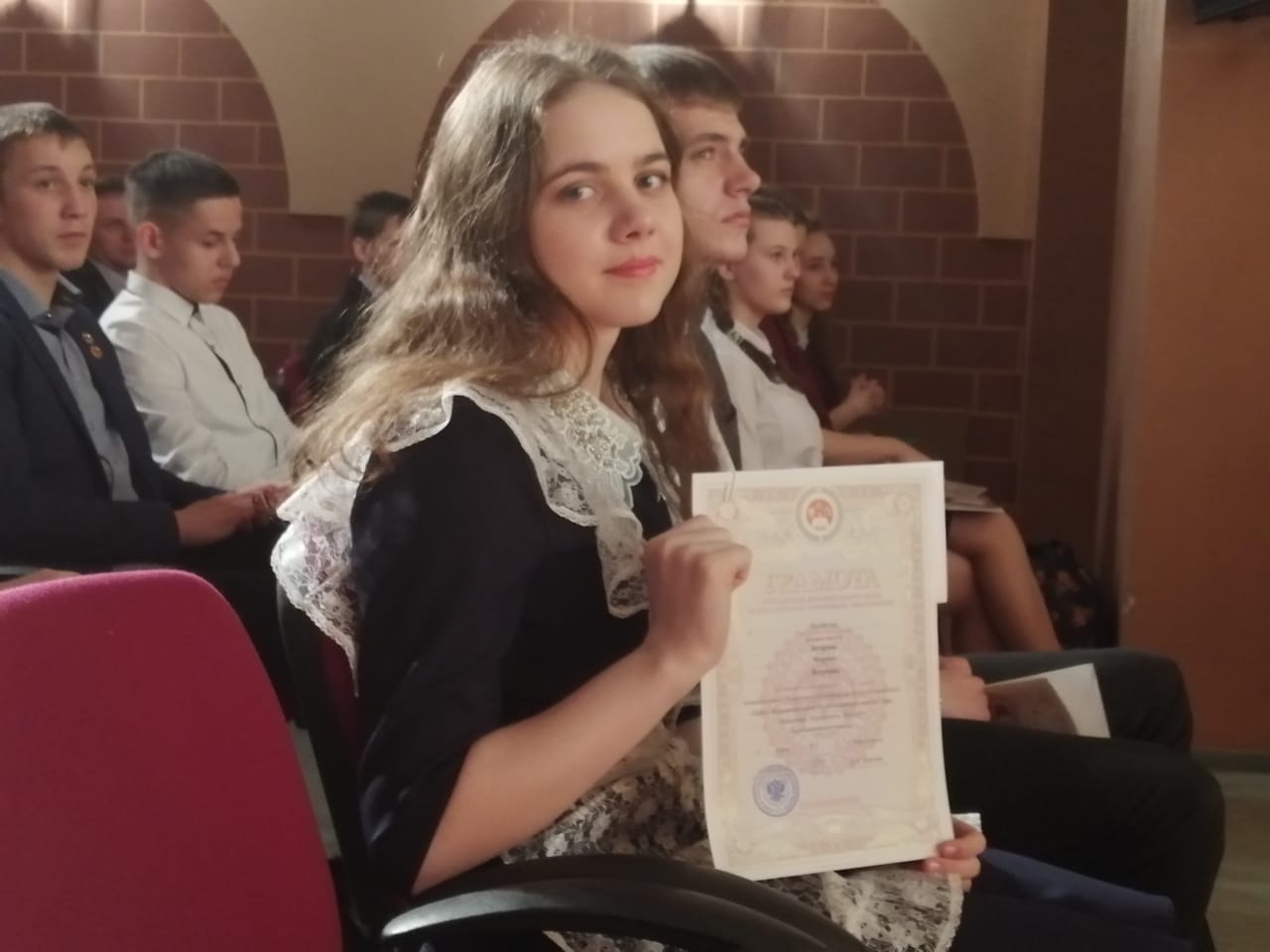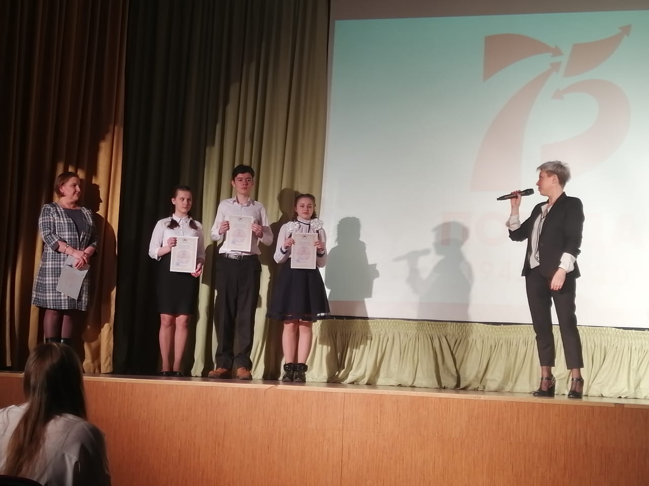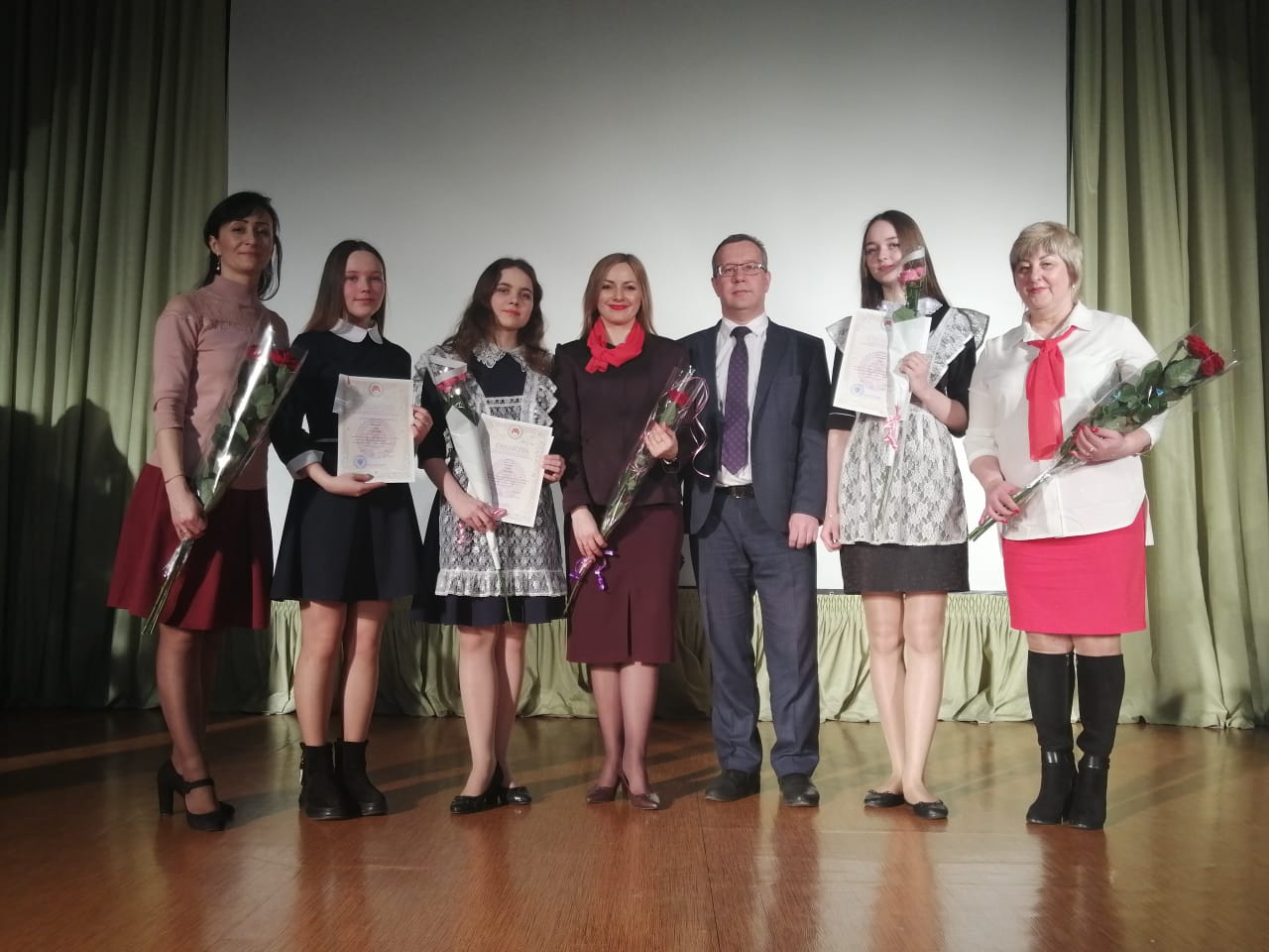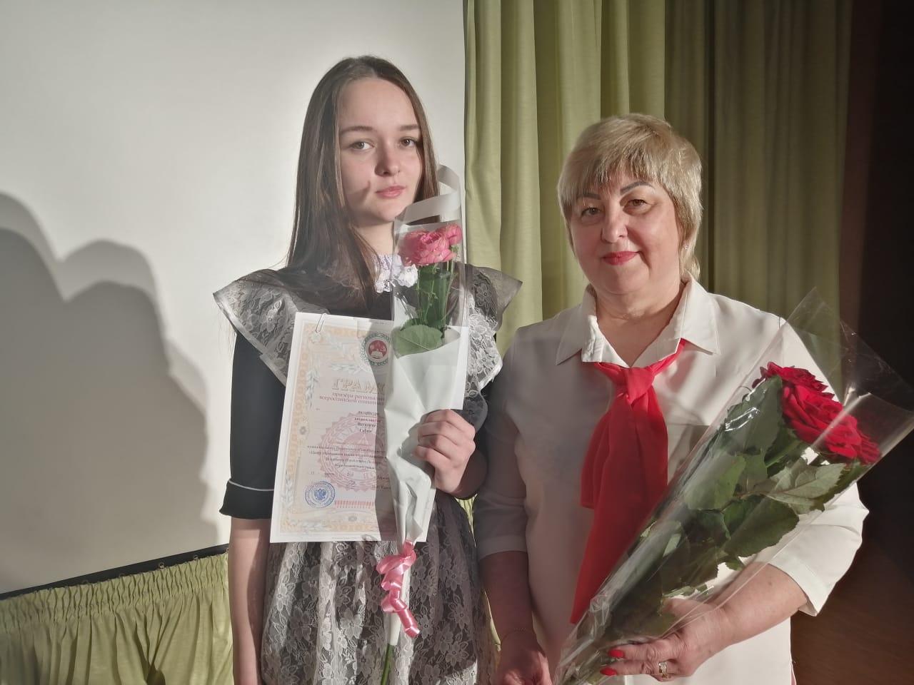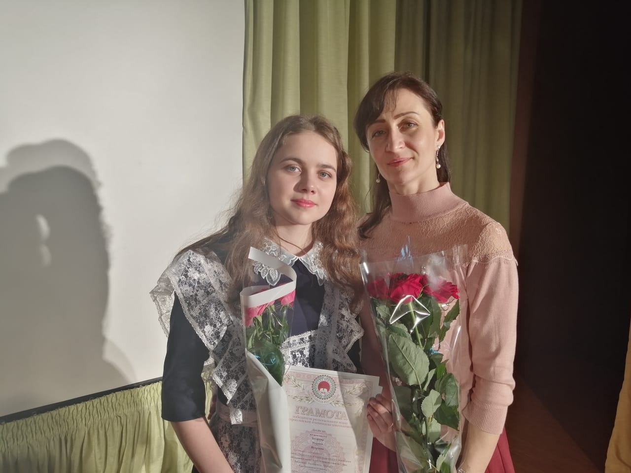 11 марта в МБОУ "Гимназия 1" г. Биробиджана состоялась торжественная церемония награждения победителей и призеров регионального этапа Всероссийской олимпиады школьников. Заслуженные награды были вручены учащимся образовательных учреждений области и педагогам - наставникам. Заслуженные награды были вручены учащимся образовательных учреждений области и педагогам - наставникам. учащуюся 11 класса Захарову Марину и педагога-наставника Наконечную Марину Хазбиевну; учащуюся 11 класса Вегелите Габию - призера олимпиады по литературе и учителя Акимову Елену Александровну.