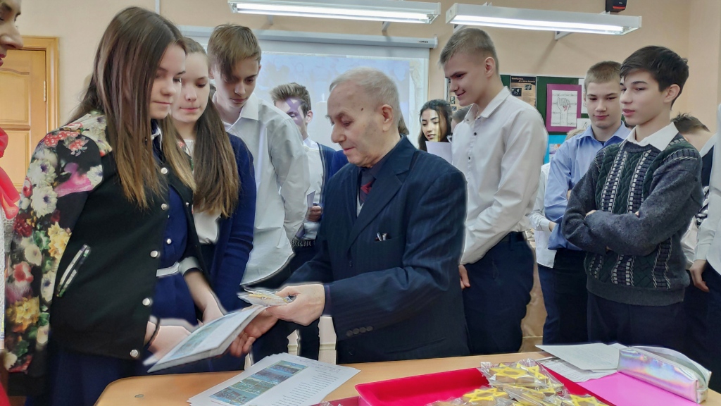 Почетным гостем и экспертом выступил Роман Борисович Файн, который не только по ходу урока давал ребятам разъяснения таких понятий как гетто, геноцид, праведники народов мира, но еще и прочитал свои собственные произведения, отражающие жизненный опыт, знание событий, пережитых и прочувствованных автором.